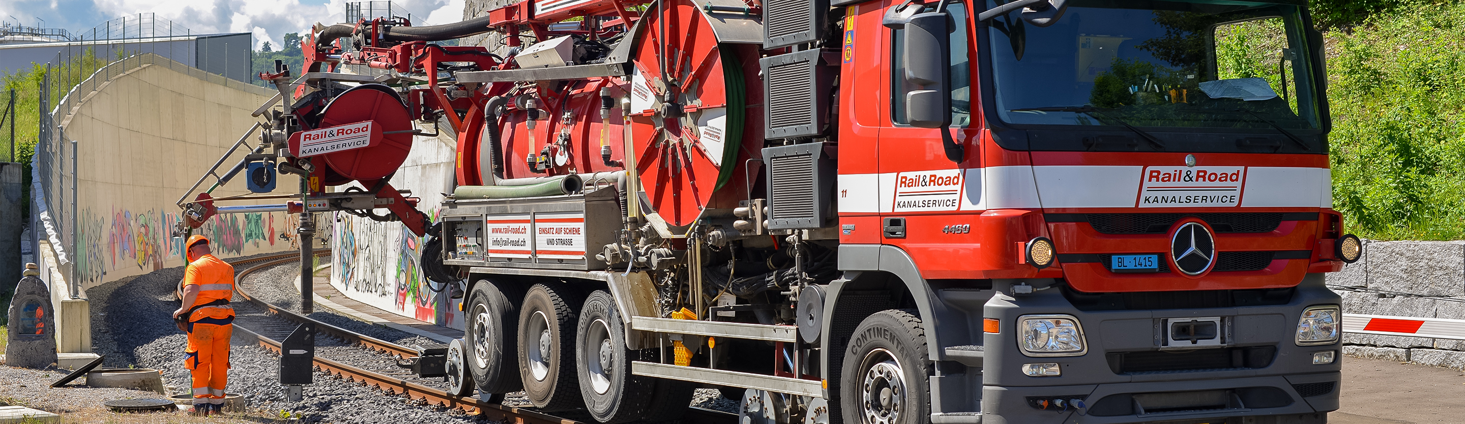 - Sewer cleaning with two-way recycling flushing/suction vehicle on rail and road (track drainage, stations, tunnels, bridges, etc.)