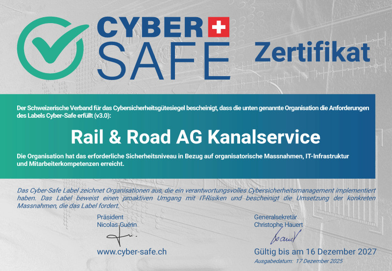 Sicherheit und Gesundheit sind uns ein zentrales Anliegen und hat höchste Priorität. Dank technischen Massnahmen, reduzieren wir das Risiko welches von Gefahren ausgeht, die sich nicht beseitigen lassen. Dank organisatorischen Massnahmen, kennen unsere Mitarbeitenden die Gesundheits- und Unfallrisiken und wissen wie sie ihnen begegnen müssen. Dank personenbezogenen Massnahmen erhöhen wir den Schutz des einzelnen. Die Mitarbeitenden werden in die Suche nach Lösungen mit einbezogen.Cyber-Safe-Zertifikat